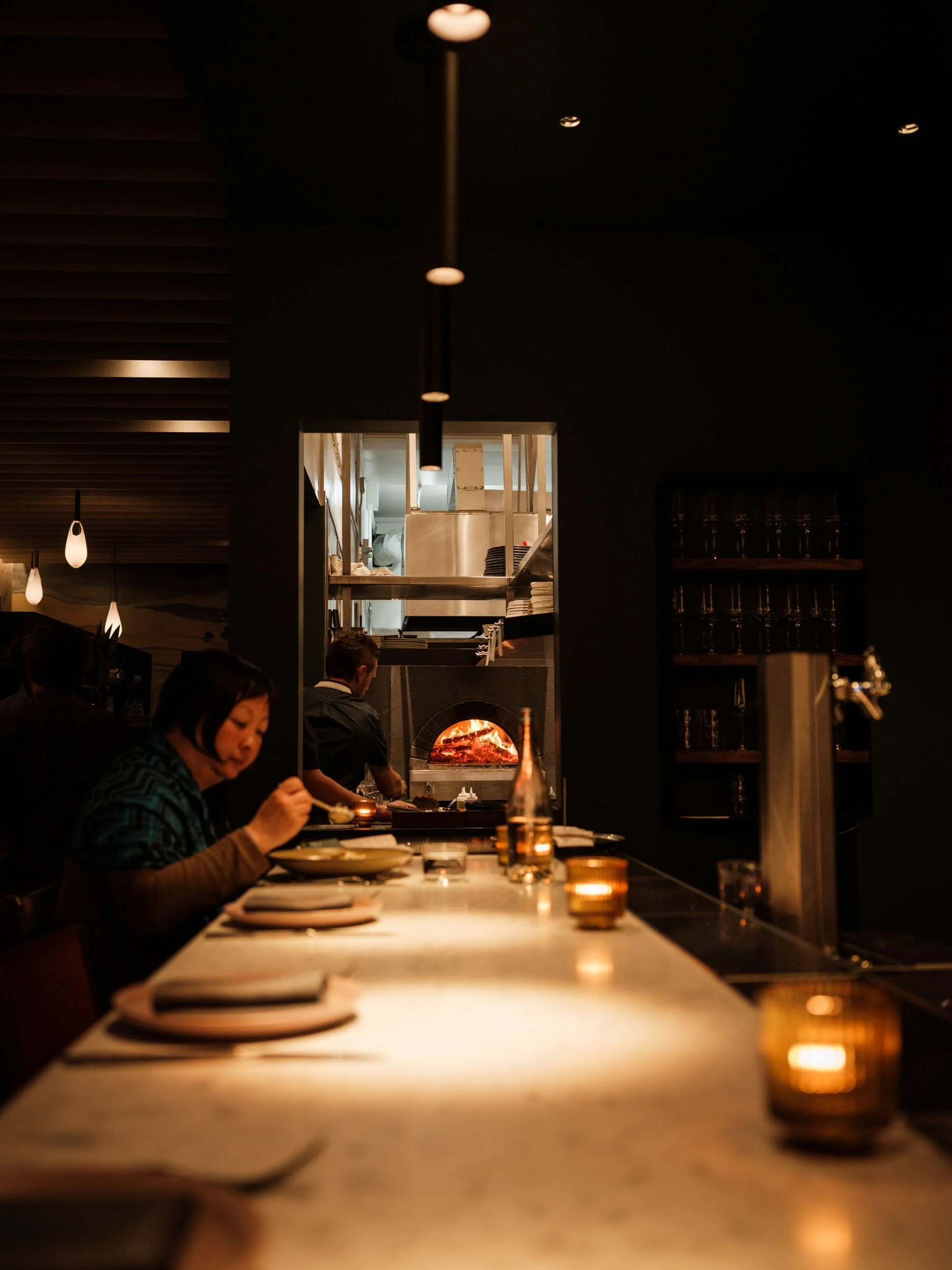 A restoration project for one of the most celebrated neighborhood restaurants in San Francisco, CA, Flour+Water aims to fuse food and ingredients into the foundation of the design and architecture of the restaurant. The collaboration process with the chef/client was centered around creating a story that brought the heart of the restaurant, the kitchen, into resonance with the space. This was achieved by a careful selection of materials accompanied by lighting that brings the space and materiality to life.